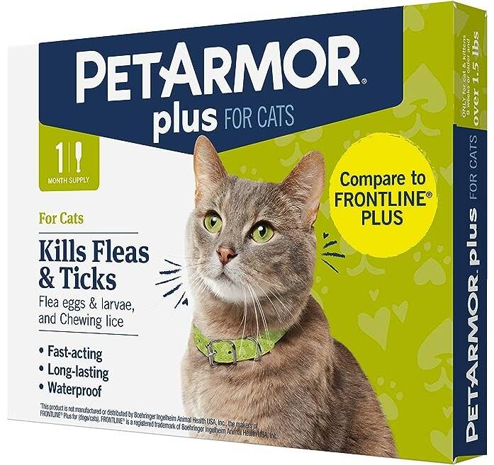 Your pets are family, and PetArmor® helps you confidently care for your cat, especially when it comes to flea and tick control. PetArmor® Plus conveniently provides quality protection without the expense of a vet visit. PetArmor® Plus Flea & Tick Topical is a waterproof, fast-acting, long-lasting formula that kills adult fleas and ticks plus stops the flea cycle dead in its tracks. Get nose-to-tail 30-day protection with each dose at an affordable price.