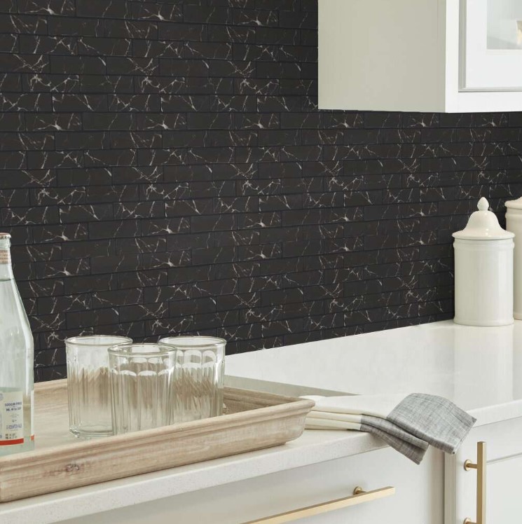 12-Inch x 12-Inch Glass Dreamscape Nero Marquina Wall Tile Sheet