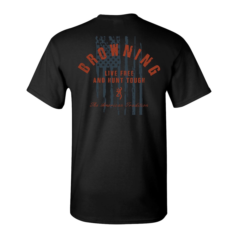 Live Free and Hunt Tough graphic tee from Browning should be a staple in every wardrobe. The Browning logo is proudly displayed on the front while the print is easy to read on the back. Made of 50/50 cotton and polyester this shirt is comfortable and breathable.