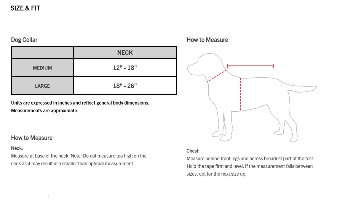 | Collar Length | 12 in - 18 in |