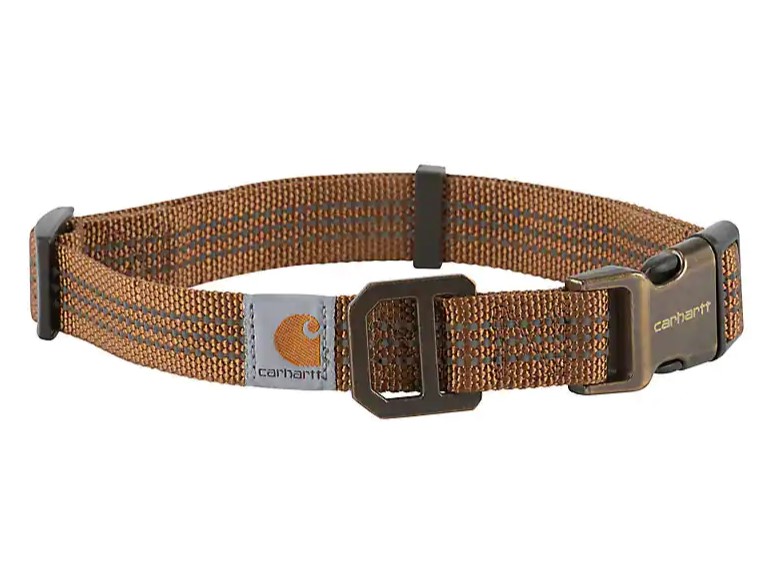Make no bones about it, our ultra-durable collars are up for whatever task comes your dog"s way. Built with duck canvas materials, this dog collar has a classic look that's undeniably Carhartt. It has reflective details to stand out at night, its fully adjustable, and its built with a sturdy half-metal, half-plastic buckle that stays strong but is still easy to take on and off.