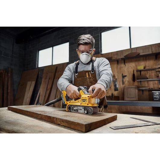 Designed with the professional in mind DeWALT®'s First 20V* MAX XR® 3X21 in. Cordless Belt Sander (Tool Only) is ideal for carpentry, remodeling, and general contracting. The variable speed trigger with lock-on 25 speed selection dial allows for control for various applications. The quick release belt change allows sandpaper to be changed easily. With the over-mold auxiliary handle it gives you two- handed operation and grip for scribing applications. The dust collection features include a tool-free Dust Port Swivel adapter, that is compatible with DeWALT®'s Airlock™ System or a standard 35mm dust extractor (both sold separately) to minimize dust during sanding. Wireless Tool Control™ System allows for ease of use when paired with compatible DeWALT® vacuum or dust extractor (both sold separately). With a Brushless Motor, this cordless belt sander can achieve long runtime and efficiency. Lastly, the 3X21 in. platen allows for large surface area sanding.