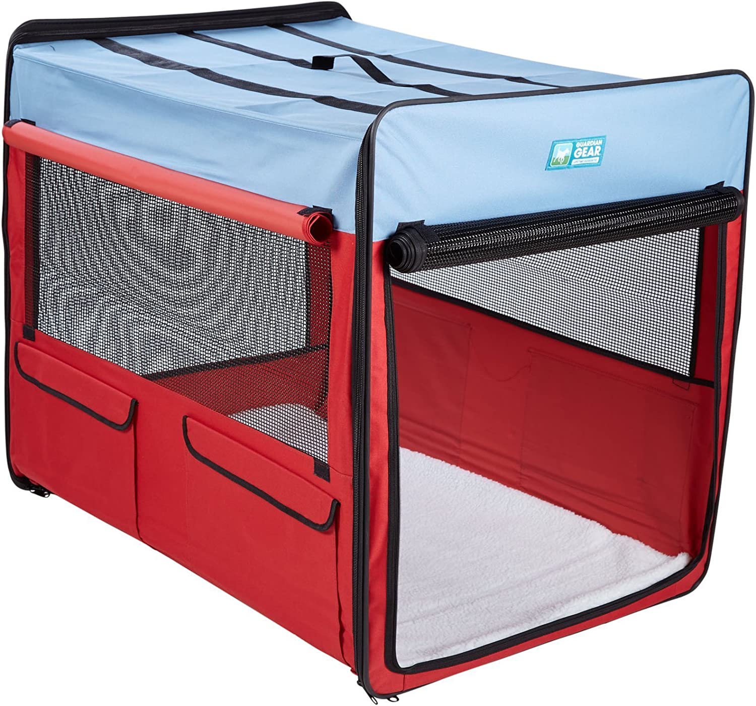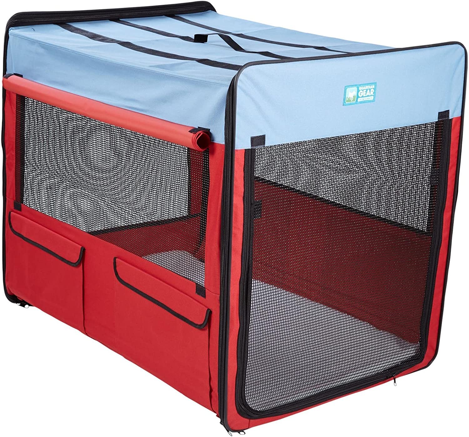 Pets travel in comfort and style with our Guardian Gear® Collapsible Dog Crates. Each portable dog crate is attractive, durable, water-resistant, and easy to clean. Dog crates have integrated wire framing that assembles and breaks down in seconds with no tools required.