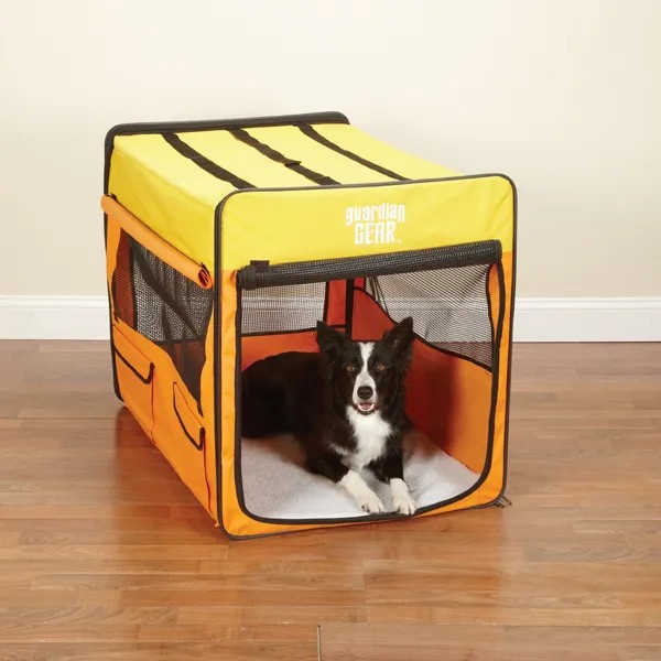 Pets travel in comfort and style with our Guardian Gear® Collapsible Dog Crates. Each portable dog crate is attractive, durable, water-resistant, and easy to clean. Dog crates have integrated wire framing that assembles and breaks down in seconds with no tools required.