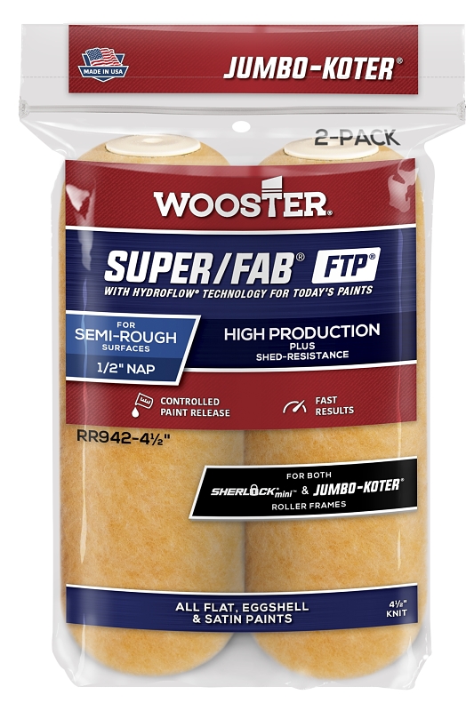 4-1/2-Inch, 1/2-Inch Nap Super/Fab Paint Roller Cover, 2-Pack