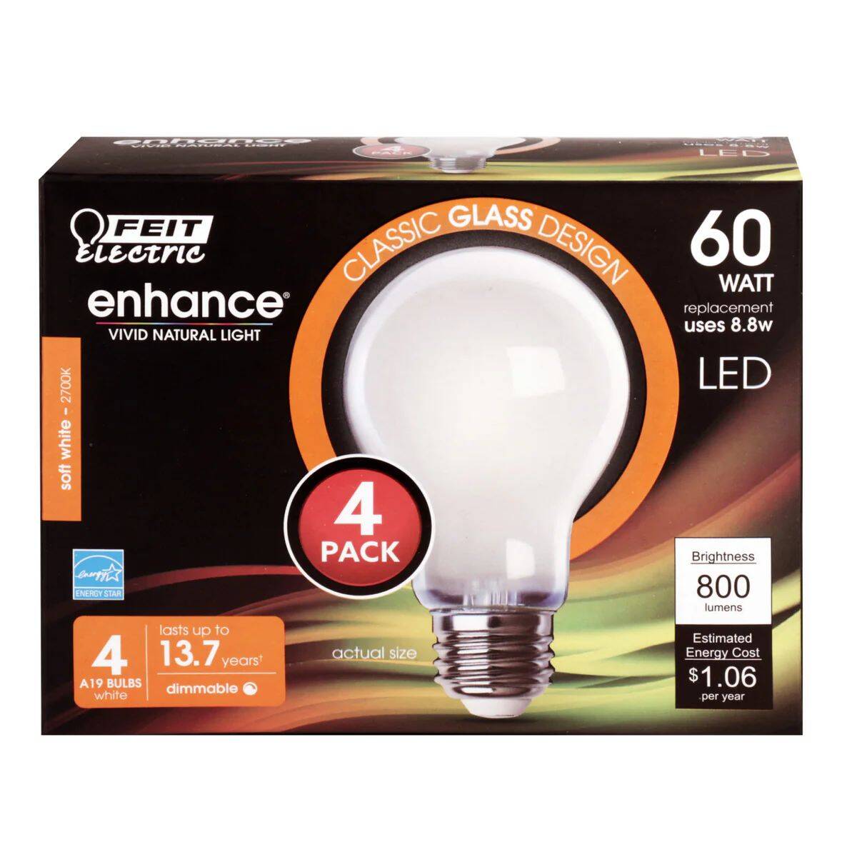 Enhance® General Purpose 60-Watt Equivalent A19 E26-Medium Soft White Dimmable LED Light Bulb, 4-Pack