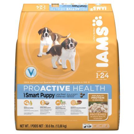 IAMS Smart Puppy Large Breed promotes optimal growth with balanced nutrition specifically designed for large-breed puppies and essential DHA for healthy brain development and the best start possible.