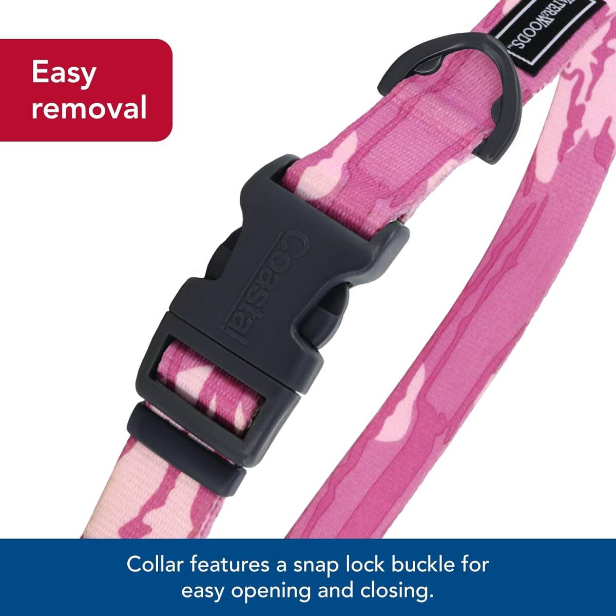 The Water & Woods Adjustable Dog Collar, meticulously crafted with top-quality materials, is the ultimate collar for dog. Built to endure intense play, its vibrant pattern remains vivid and eye-catching due to colorfast material that resists sun exposure and other elements, preventing fading over time. A notable aspect of this patterned dog collar's design is the innovative curved snap-lock buckle. This feature ensures a comfortable, secure fit around your dog's neck, particularly important during movement. With adjustability to accommodate various neck sizes, this collar offers a customized fit for dogs of any size or breed. Founded in Ohio in 1968, Coastal Pet is committed to producing and delivering quality products that people trust for the pets they love. Coastal Pet is also a huge part of establishing industry standards for product safety, strength, and durability throughout the years. We make products for dogs and cats of every size, shape, and lifestyle. We've got the collars, leashes, harnesses, and toys that keep them smiling. We also offer products for grooming, traveling, and feeding your pets through brands like Bergen and Safari by Coastal.