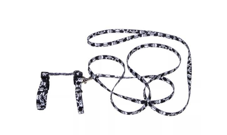 Small - 3/8-Inch X 10-Inch-18-Inch Black Skulls Figure -H Fashion Adjustable Cat Harness And Leash Combo