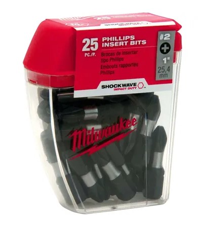SHOCKWAVE™ Impact Duty™ Phillips Bits are engineered to be the Most Durable, Best Fitting driver bits on the market. The Phillips bits feature Wear Guard Tip™ for increased wear resistance which protects the fit over the life of the bit. The impact driver bits have and optimized Shockzone™ for each tip type and length of driver bit to absorb peak torque and prevent breaking. The Custom Alloy76™ Steel is customized and heat treated per tip type to extend the life of the driver but by up to 50X vs. competitive impact driver bits. The MILWAUKEE® SHOCKWAVE™ Impact Duty™ driver bits are built to deliver extreme durability for the most demanding applications.