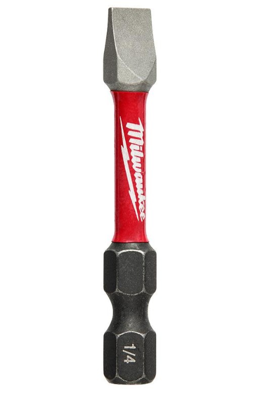 SHOCKWAVE™ Slotted Impact Bits are engineered to be the Most Durable, Best Fitting driver bits on the market. The slotted bits feature Wear Guard Tip™ for increased wear resistance which protects the fit over the life of the bit. The impact driver bits have and optimized Shockzone™ for each tip type and length of driver bit to absorb peak torque and prevent breaking. The Custom Alloy76™ Steel is customized and heat treated per tip type to extend the life of the driver but by up to 50X vs. competitive impact driver bits. The MILWAUKEE® SHOCKWAVE™ Impact Duty™ driver bits are built to deliver extreme durability for the most demanding applications.