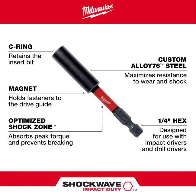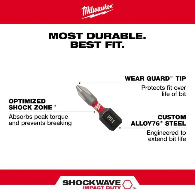 SHOCKWAVE™ Expand Impact Driver Bits are engineered to be the Most Durable, Best Fitting driver bits on the market. The Wear Guard Tip™ delivers increased wear resistance which protects the fit over the life of the bit. The Shockzone™ is optimized for for each tip type and length of driver bit to absorb peak torque and prevent breaking. The Custom Alloy76™ has a customized steel and heat treatment per tip type to extend the life of the driver bits, providing up to 50X life vs. competitive impact driver bits. SHOCKWAVE™ driver bits are built to deliver extreme durability for the most demanding applications.
