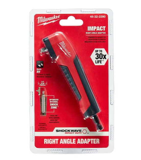 Shockwave™ Right Angle Adapter features an Internal Optimized Shockzone™ which absorbs peak torque and prevents breaking. The shanks is made from Custom Alloy76™ Steel which is engineered for extended life. The hardened gears provide increased torque transfer for added durability. With only a 1.4" Slim Profile, the adapter allows access into the tightest of spaced. The Shockwave(tm) Right Angle Adapter is designed for use in both Impact Drivers and Drill Drivers and works with all 1/4" Hex Shank accessories.