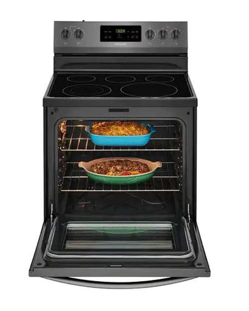 The Frigidaire 30-Inch Electric Range allows you to cook more at once with 5.3 cu. ft. and 3 small elements and one large and one expandable element to fit all of your cooking needs.