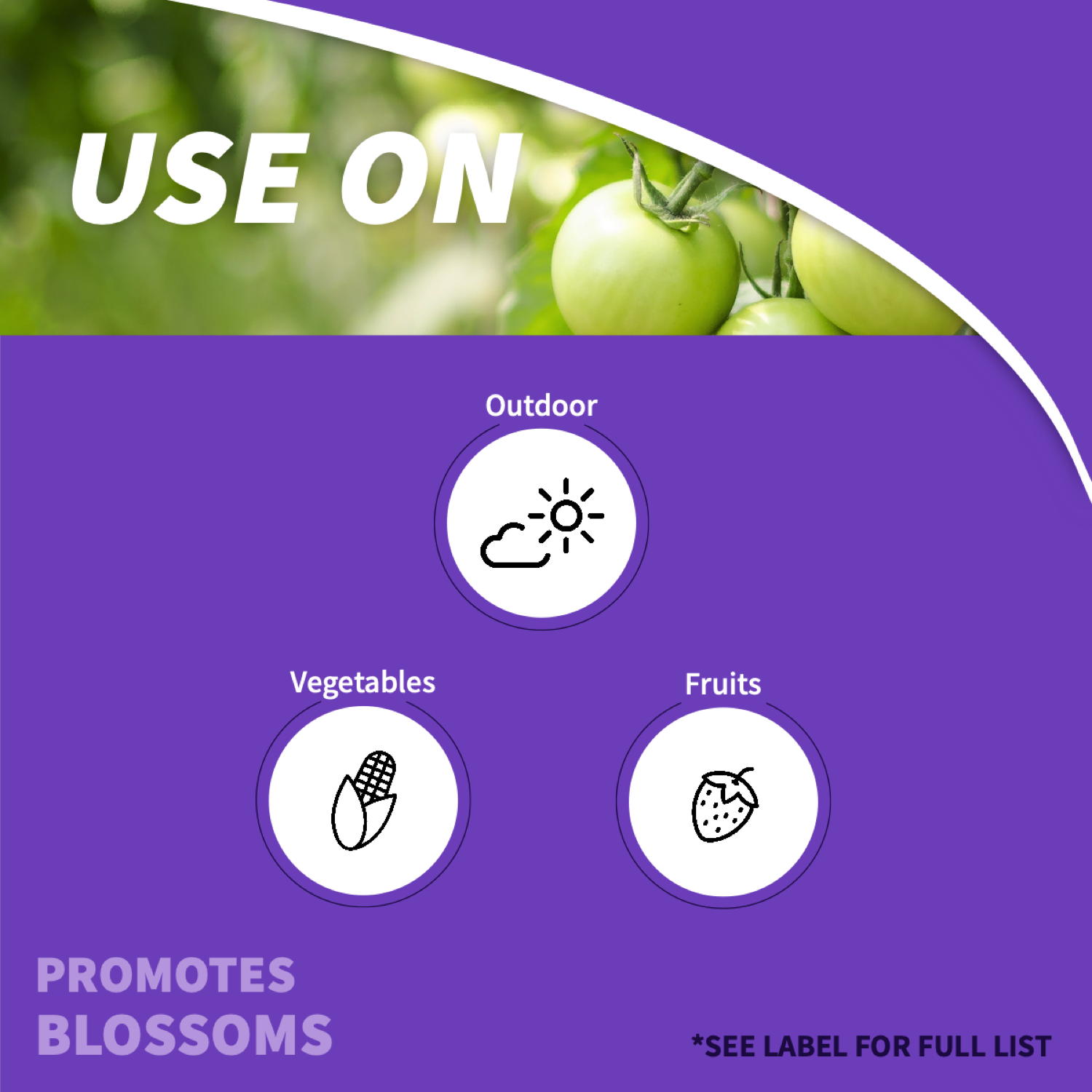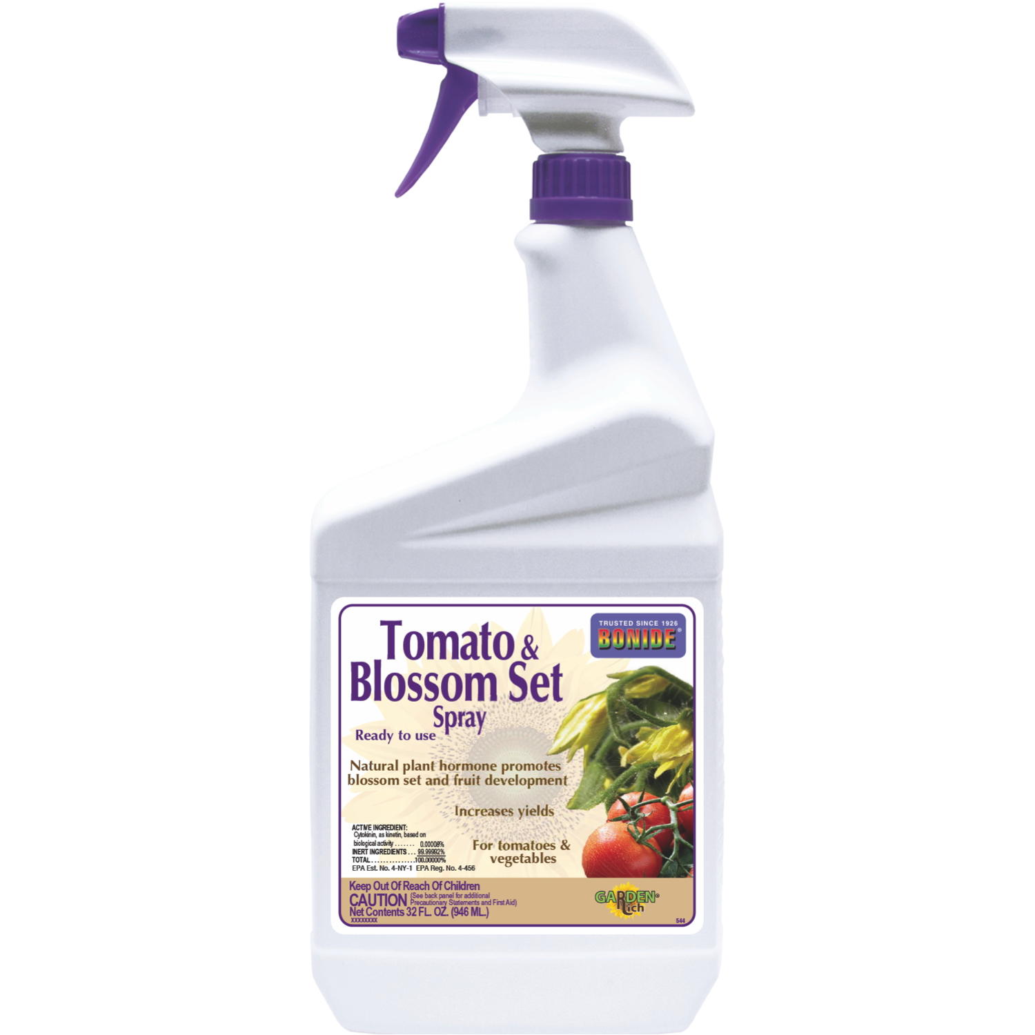 BONIDE Tomato and Blossom Set Spray promotes flowering and blossom set. It can also be used to help reduce blossom end-rot for tomatoes and other listed vegetables.