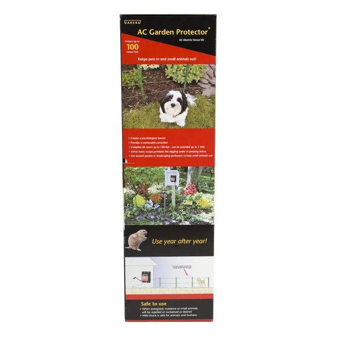 ZAREBA® AC GARDEN PROTECTOR ELECTRIC FENCE KIT: Small nuisance animals such as rabbits, raccoons and squirrels can pose a big threat to your garden. The Zareba® AC Garden Protector Electric Fence Kit is an electric garden fence kit that will deter just about any type of pesky critter before it can ruin all of your hard work. This innovative electric fence is powered by an AC charger that gives the animal a gentle shock if it tries to breach the perimeter, while also conditioning it not to return. You can even utilize our electric garden fence as a training tool to teach your dog, cat or other four-legged pet to stay out of your garden.
