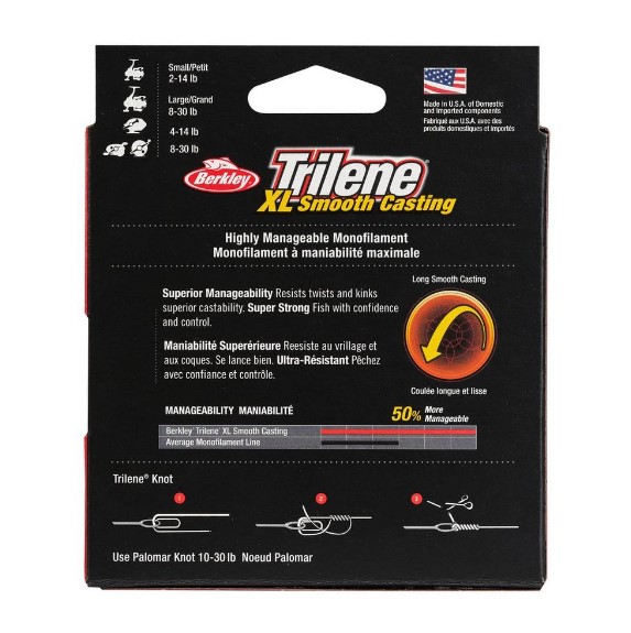 The Best Trilene XL Ever! Stronger and Smoother than ever, this improved formula has 20% greater knot strength and over 50% greater wet strength. 50% more manageable than average nylon monofilaments for smooth casting and maximum manageability.