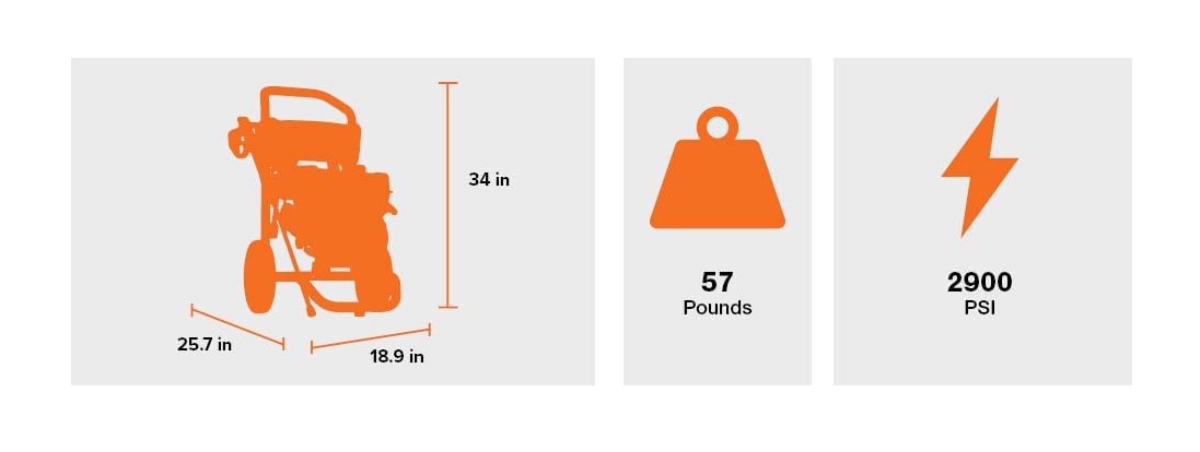 Generac’s 2900 PSI power washer gives you cleaning power, reliability and –above all – ease of use in an affordable, compact unit you can use to clean everything from patio furniture to driveways and decks. The user-friendly design makes it easy to assemble, connect hoses, move almost effortlessly regardless of terrain, and clean longer and more comfortably.