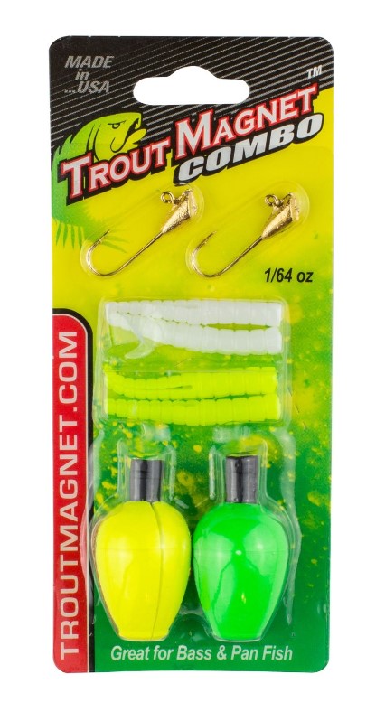 It's perfect for beginners and experienced angler's alike. The Trout Magnet Combo Pack include all the pieces needed to get started fishing with Trout Magnets. The Trout Magnet Combo 8 pc. Pack includes (2) 1/64 Size 8 hooks, 4 bodies and (2) EZ Trout Floats