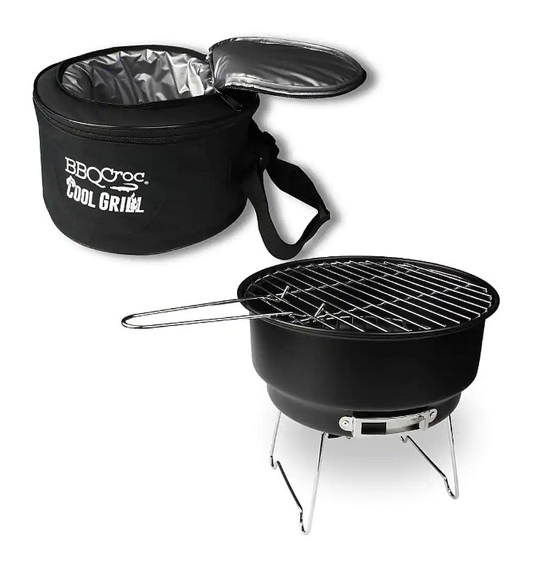This innovative all in one cooler and portable grill carries your food and your grill all in the same container. The cooler bag has 2 separate sections and holds not only the food and drinks, but also the grill! Made of quality carbon steel, the grill has removable legs, an adjustable air vent and includes a grill lifter for easy access to coals. Heat source: Charcoal, Wood or Briquettes.