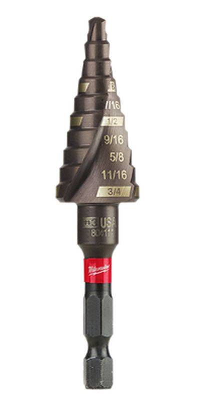 Our SHOCKWAVE™ Impact Duty™ Step Bits are engineered to deliver the most durable and fastest impact step bit hole drilling solution. Our step drill bits are made in the USA with global materials and give you best-in-class performance in impact drivers with the versatility to be used in drills. The 1/4-inch hex shank has an optimized SHOCKZONE™ body providing you with the industry’s most durable shank, reducing early shank breaks. A Titanium Aluminum Nitride (TiAlN) coating helps deliver you 5x longer life, while the step drill bit's Rapid Strike™ tip and dual spiral flute produce 2x faster holes.