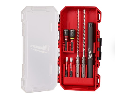 SDS Plus M/2™ 2-Cutter Concrete Screw Installation Kit provides a durable and versatile solution for fast installation of concrete screws. This complete drive system is designed for concrete screw drilling AND driving applications, allowing you to use only one tool for the job – resulting in increased productivity and fewer bit swaps. Our SDS Plus Bits with 1/4" Hex are designed specifically for concrete screw applications. Built to take on brick, block, and concrete, MILWAUKEE® M/2™ SDS bits feature 2-Cutter geometry for fast drilling and debris removal. These bits are engineered with a built-in hex collar for perfect hole depths. The included magnetic SHOCKWAVE Impact Duty™ Concrete Screw Nut Drivers bear a recessed shoulder feature, which prevents concrete screws from snapping during installation and ensures the anchor is set to the perfect depth. Our Drill/Drive sleeve connects to the drill and driver bits for quick and easy anchor installations without carrying two tools and extra bits. Optimized for performance in any SDS Plus tool. Packaged in a medium, single-sided hard case designed for use in PACKOUT™.