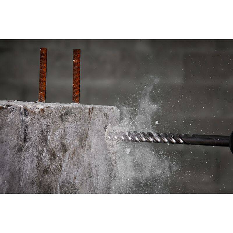 Our MX4™ 4-Cutter SDS MAX Rotary Hammer Drill Bits with solid head carbide deliver up to 5x longer life in concrete with rebar. Engineered with rebar guards to provide maximum durability in hard aggregate and rebar. We designed our MX4™ 4-Cutter bits with sharp centering tips for exact spot drilling in concrete. The integrated 4-cutter design prevents lock-up in rebar, reducing downtime. Optimized flutes remove dust faster, reducing heat and delivering up to 15% more holes per battery charge. The wear mark indicator on each drill bit shows you when they no longer meet the ANSI requirement. These MILWAUKEE® MX4™ 4-Cutter Drill Bits are ideal for concrete with rebar and masonry applications.
