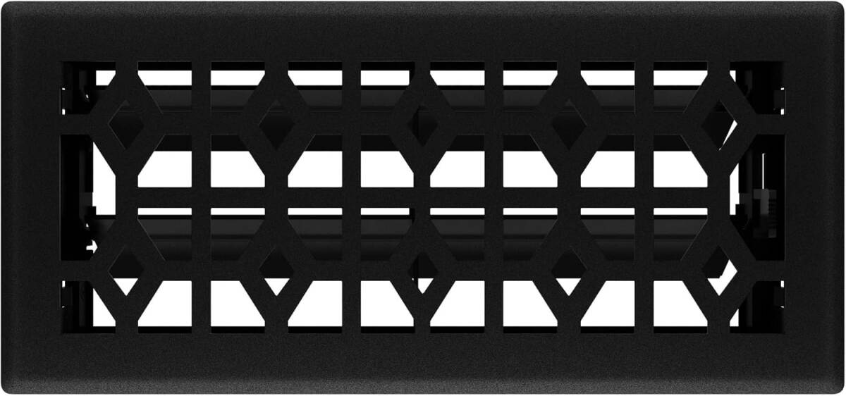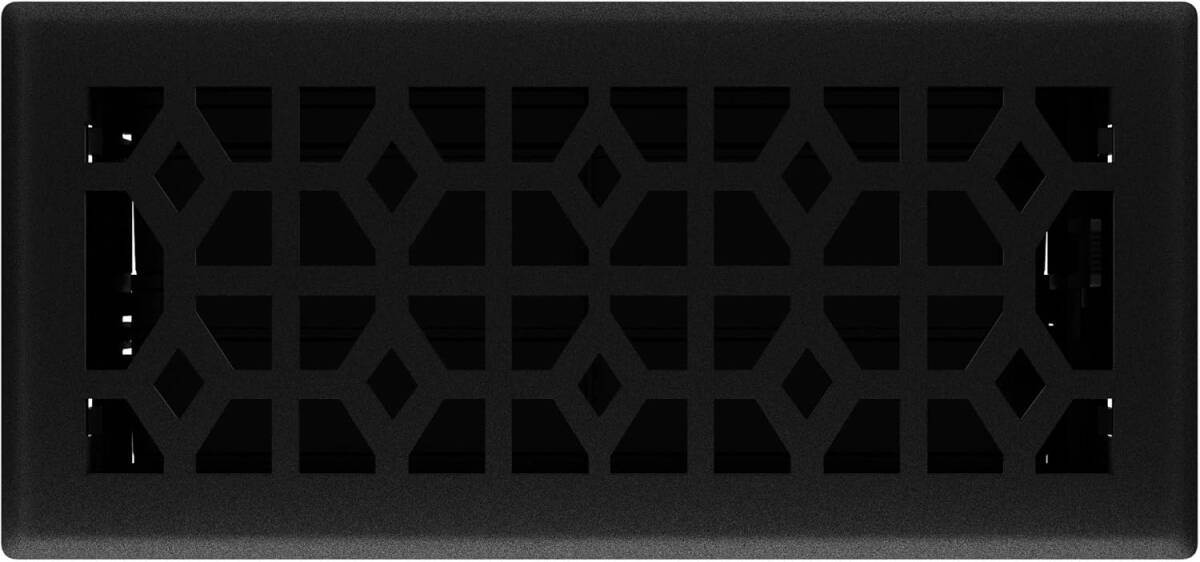 Imperial's Signature Series decorative floor register with contemporary Templar design. Crafted for beauty, durability, and designed to complement trending floor finishes. Solid 1. 55mm steel face plate with textured powder coat painted finish. High-impact polystyrene damper body is rust-proof—adjustable multi-directional airflow.