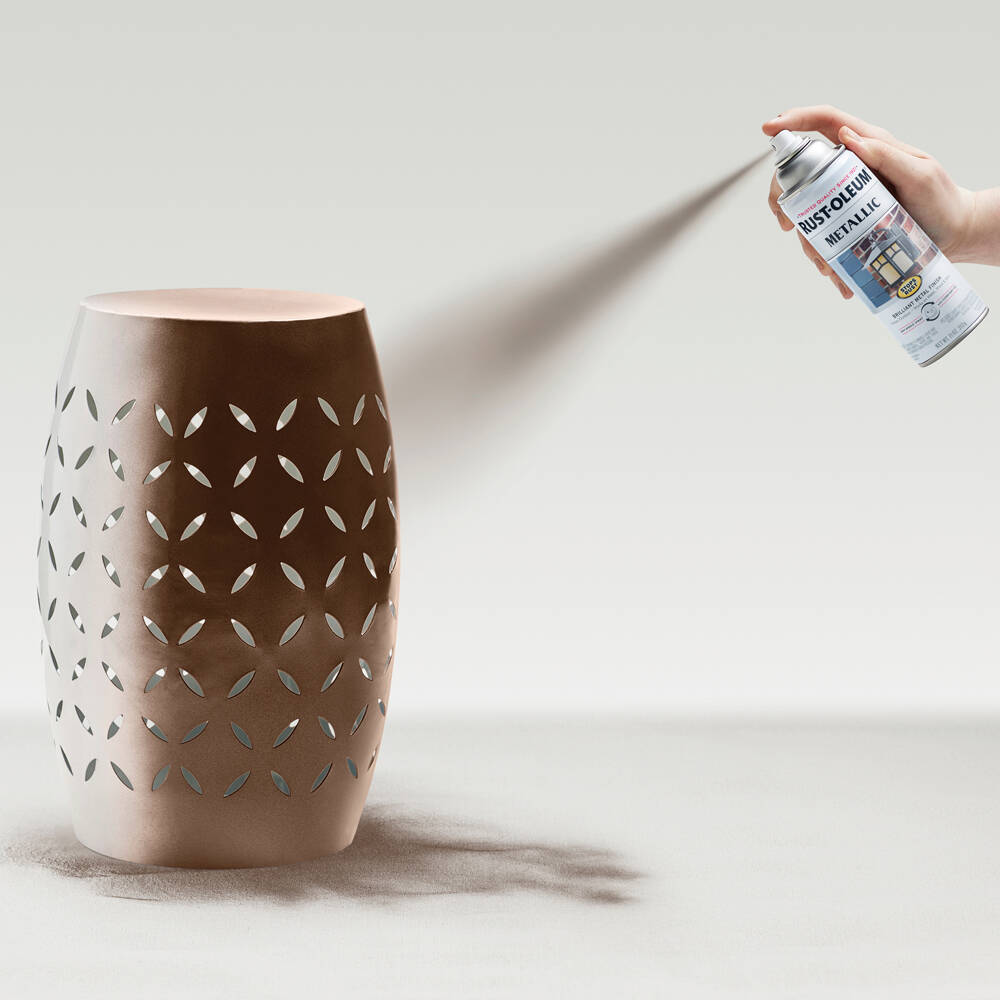 Rust-Oleum Stops Rust Protective Metallic Enamel Paint makes it easy to refinish and refresh. Works great on outdoor light fixtures, patio furniture, wheel barrows, wrought iron, bicycles and any metal surface. This classic low sheen finish is ideal for indoor and outdoor projects.