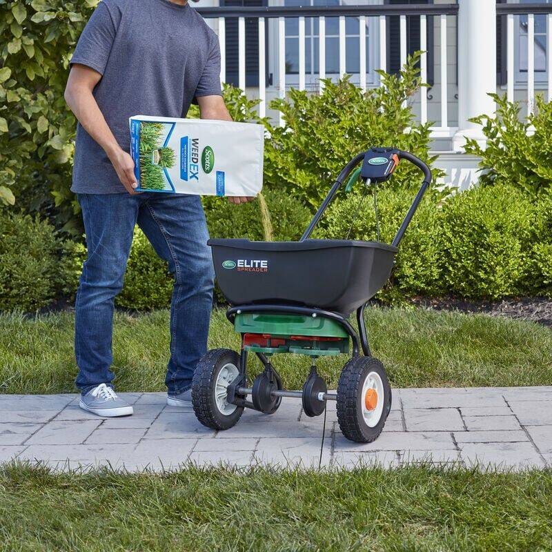 | Application | Check bag for spreader setting. When using a Scotts® broadcast or Wizz® spreader, make a perimeter pass of your lawn with EdgeGuard® on to protect non-lawn areas. Then, make parallel internal passes 5 ft. apart to ensure even coverage. When using a Scotts drop spreader, start 5 feet from the edge of your lawn and walk the outline of your lawn. Then, make internal passes across your lawn, overlapping the wheel marks to ensure uniform coverage. |