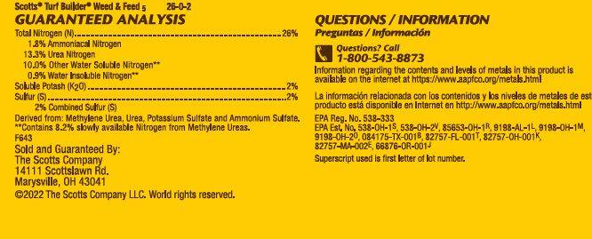 - One 11.32 lb. bag of Scotts® Turf Builder® Weed & Feed? covers 4,000 sq. ft.