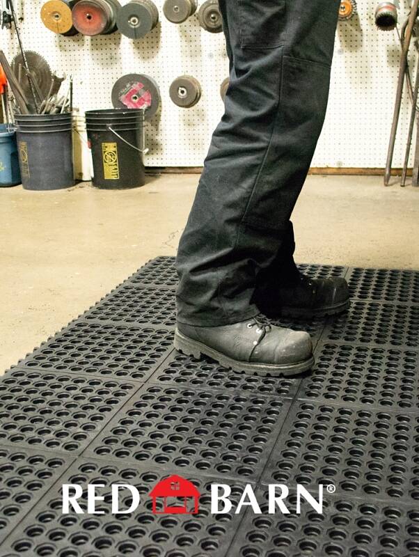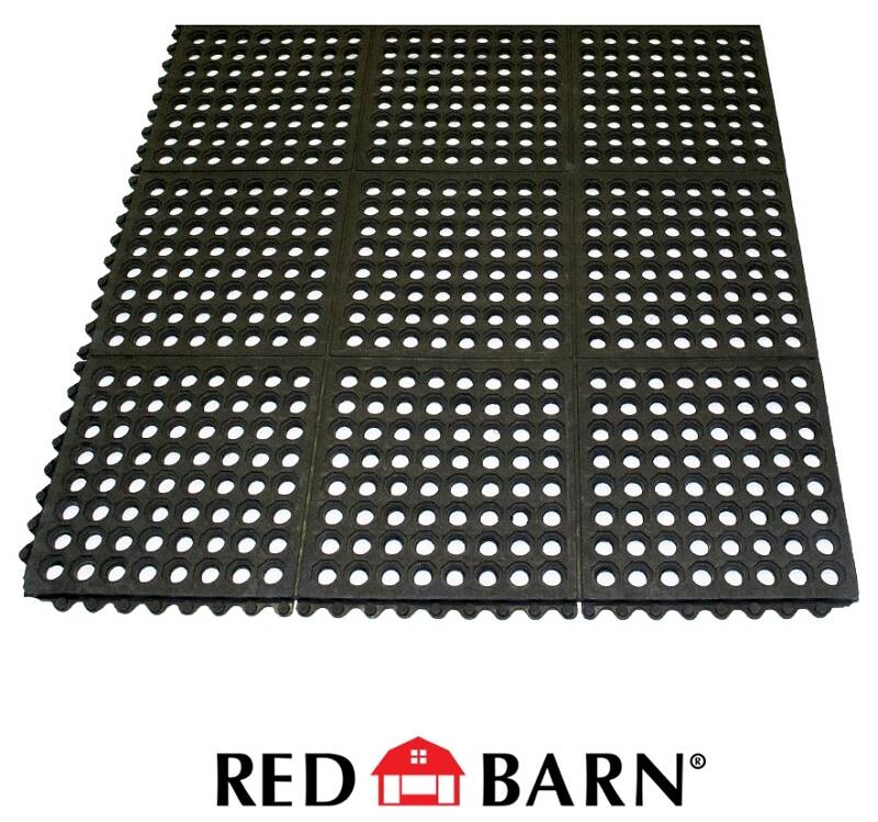 Red Barn Interlocking Mat, Specifications: 1/2 in Thickness, Rubber, Black, Dimensions: 36 in x 36 in x 1/2 in THK