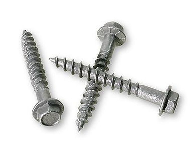 - 1/4-inch hex head with 0.370-inch-diameter integrated washer is stamped with the Simpson Strong-Tie sign and the fastener size for easy identification after installation.