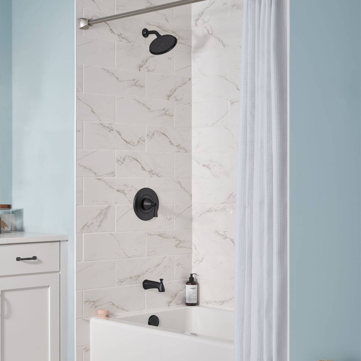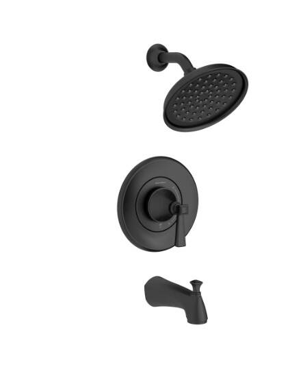 Glenmere™ Matte Black 1-Handle Tub & Shower Trim Kit - 1-Function Showerhead, 1.8 GPM, Pressure Balance Valve Included