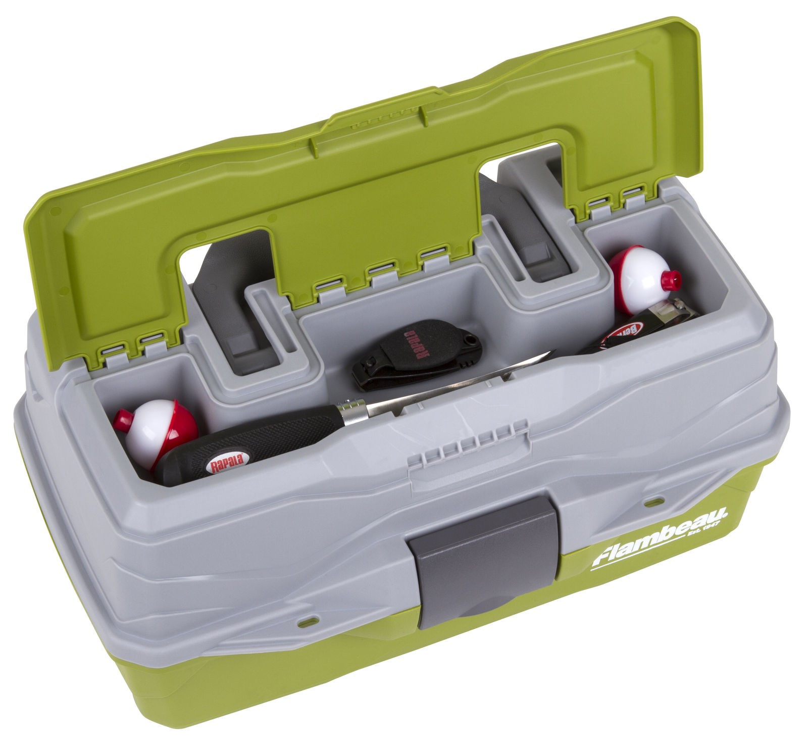 The Classic 1 Tray Tackle Box is a durable, no-nonsense storage solution for anglers who want organized gear on the water. With one main tray offering eight compartments and six removable dividers, it lets you customize space for lures, terminal tackle, and small accessories while the increased base storage holds bulkier items. A flip-top lid houses an accessory compartment for quick access, and Tip-Guard tray supports keep the tray steady while you sort gear. Built with proprietary all-weather, oil-resistant construction and a tongue-and-groove lid-to-base design for a water-resistant fit, it stands up to wet conditions. The Drawtite™ latch secures contents and the molded carry handle makes transport easy. Finished in green, this tackle box pairs functional organization with rugged, field-ready construction.