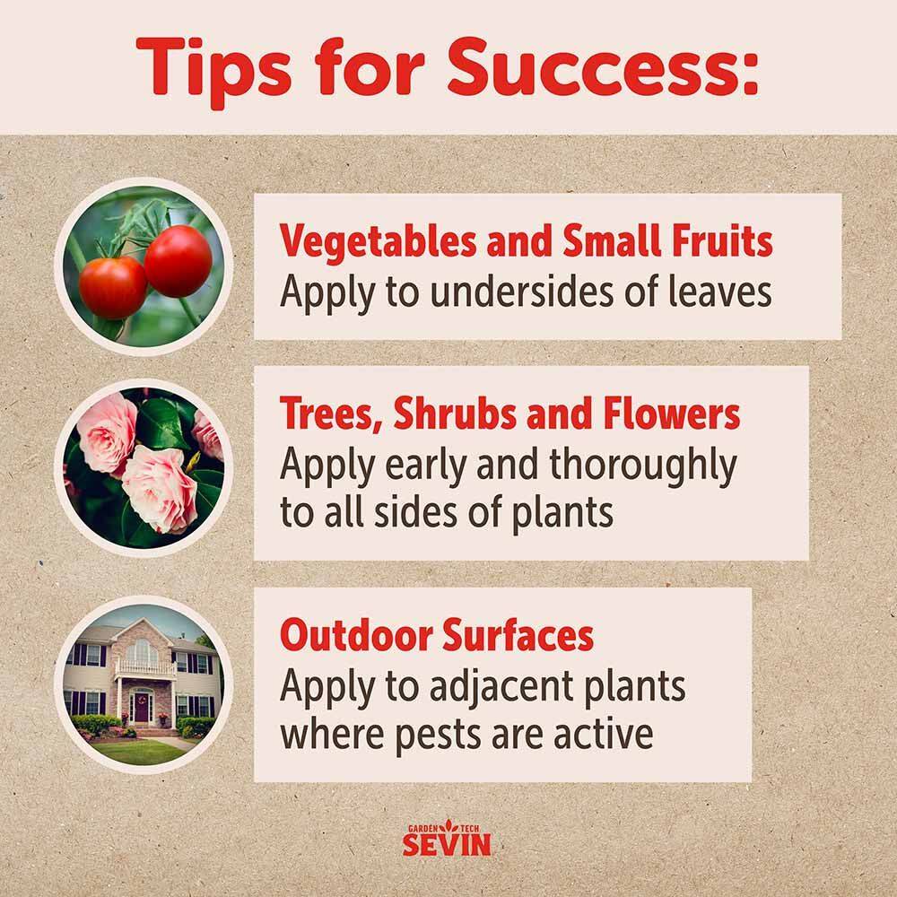 Protect your garden and lawn from damaging pests with Sevin Insect Killer Ready-to-Use Dust. This formula will not harm your plants or blooms. Simply shake the bottle and apply at the listed application rate. Thoroughly apply to place a thin, uniform layer of dust on both upper and lower sides of leaves, stems and flowers. Follow the specified application rate for your specific area, which are listed on the bottle. Use this dust as a preventative application or to control existing pests in your lawn or garden. Sevin Insect Killer Dust kills more than 150 insect pests by contact. Use this to kill and control unwanted insects around home foundations, lawns, shrubs, ornamental and flower gardens, fruit and vegetable gardens. This can also be used as an outdoor barrier treatment, providing more protection. Sevin Dust protects strawberries, raspberries, pears, sugar snap peas, broccoli, squash, pumpkin, lettuce, tomatoes, peppers, peanuts, carrots and many more listed fruits and vegetables from pests like aphids, armyworms, Japanese beetles, stink bugs, thrips, and many more. Do not dust on open blooms to protect pollinating insects. Once applied to plants, wait at least 24 hours before watering. This dust is highly effective and guaranteed to protect your garden - don't forget to check the label to find the specific application rates for the list of pests.