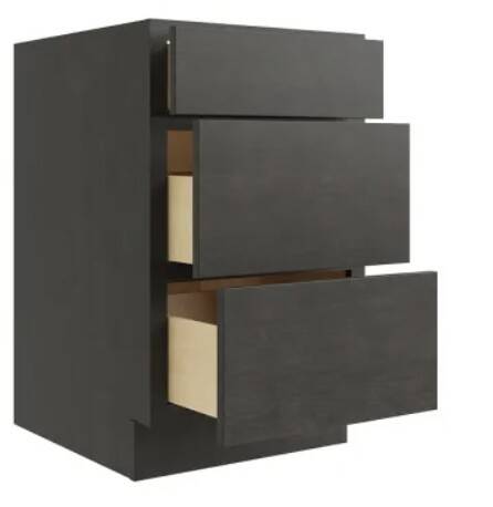 Drawers: ¾ in solid wood dovetail side, ? in thick bottom. High quality epoxy coated steel undermount glides.