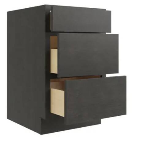 Luxor Smoky Grey 3-Drawer Base Cabinet, 18" W x 34-1/2" H