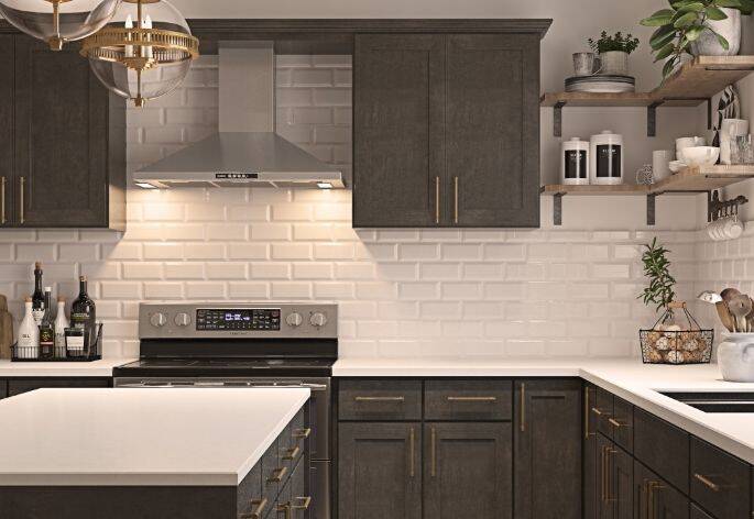 Luxor cabinets feature a shaker style and partial overlay, ideal for either traditional or contemporary décor. Available in Smoky Grey, Misty Grey, Harvest, White, and Espresso finishes, Luxor cabinets bring beauty and sophistication to your space.