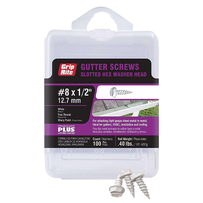 8 X 1/2-Inch White Hex Washer Head Gutter Screw 100-Piece
