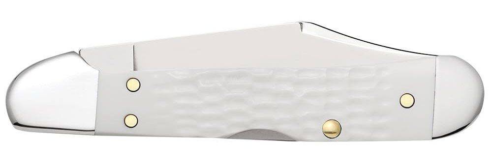 This Mini CopperLock® is a part of the White Synthetic SparXX™ Family. The pure white handle is the perfect counterpart to the vibrant red shield. The CopperLock® knife is an original design by W.R. Case that combines elements from the Trapper and Copperhead to make a new lockback knife. The Mini CopperLock® is smaller than the traditional CopperLock® without compromising durability. With a fully locking Clip blade, this Mini CopperLock® knife has the cutting power of a lockback, with the look and feel of a traditional Case pocket knife. The Clip blade is commonly used as a multi-purpose blade that makes this pocket knife great for everyday use. This knife is constructed with Case Tru-Sharp™ stainless steel which is a special high-carbon steel that helps the blades hold an edge longer than conventional steel. It also offers extraordinary blade strength and corrosion resistance. Comes conveniently packaged in a box. Made in Bradford, PA, USA from domestic and imported materials.
