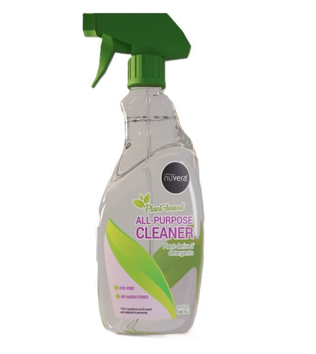 Clean all your surfaces safely and confidently with this Nuvera® plant-based* cleaner! Quickly removes messes caused by grease, grime, and dirt. Works on most surfaces including sealed granite and marble countertops, stainless steel, glazed and glass tiles, plastic, vinyl, and more. Lightly scented and infused with natural fragrance oils. Safe for use around family and pets.