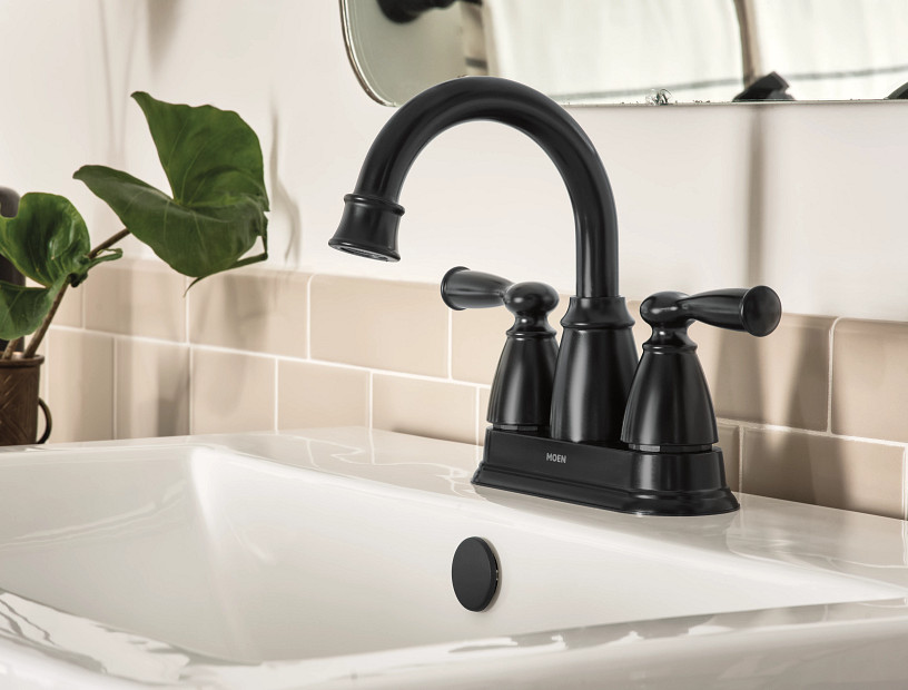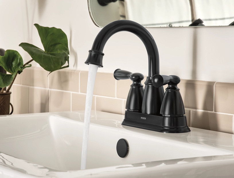Banbury® Matte Black 2-Handle Bathroom Sink Faucet With Drain, 4 in. Centerset - WaterSense® Certified