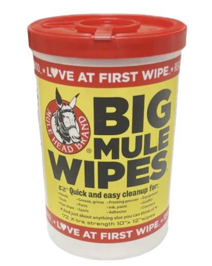 Dirty hands demand Big Mule Wipes- wipes away tough grease. Quick and easy cleanup for: Hands. Tools, Equipment, Graffiti, Adhesives, Paint, Inks, Pipe Dope, Printing Presses, Counter Tops