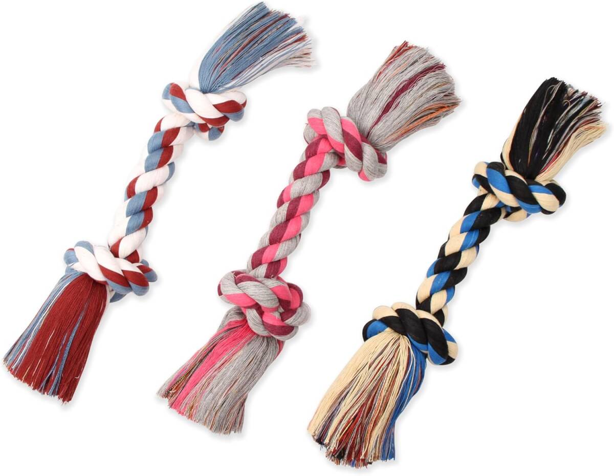 - With a classic dog bone shape, this rope dog toy is ideal for tossing, fetching and playing tug of war with dogs, and is a tough toy for dogs playing solo.
