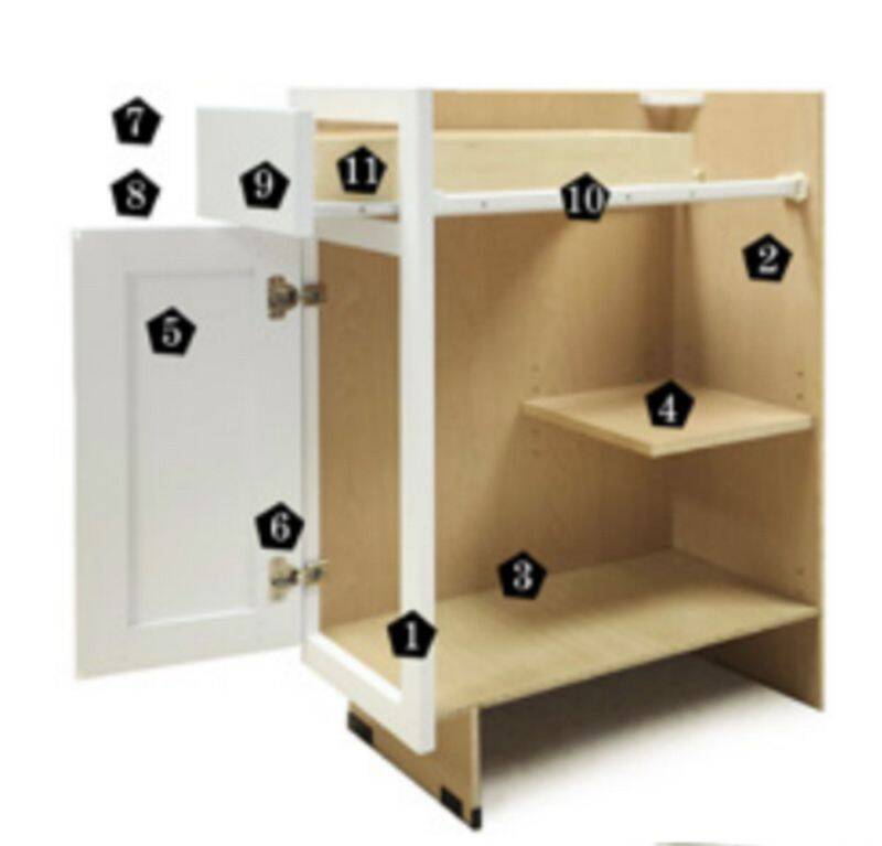 - 3/4-inch Hardwood face frames with glued and pocket screwed joints.