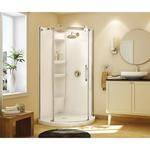 Round acrylic base provides increased interior space. Low 3 in acrylic shower base for easy and safe access. Silent and gentle roller door system. 8 mm (5/16 in ) thick clear, glass and chrome hardware finish.