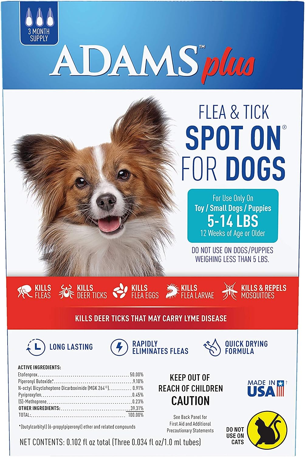Adams Plus Flea & Tick Spot On For Small Dogs, 5-14 Pounds