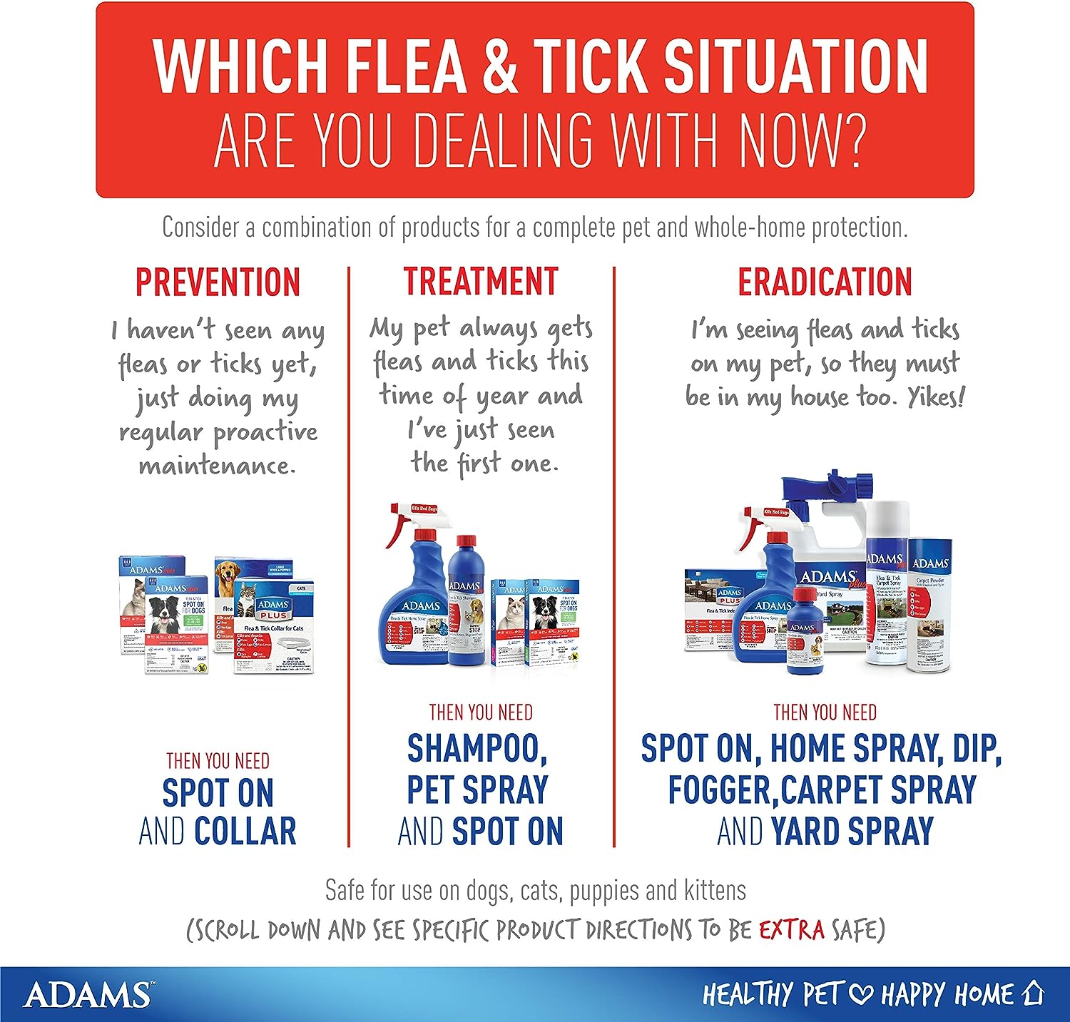 Adam's Plus Flea & Tick Spot On for Dogs works on contact, to provide your best furry friend with fast-acting and long-lasting treatment of adult fleas and ticks - including those that may carry Lyme Disease - for a full month. Also kills and repels mosquitoes that may transmit West Nile. Contains an active ingredient that breaks the Flea Life Cycle by killing flea eggs and larvae before they hatch, to prevent re-infestation on your dog, and in the home.