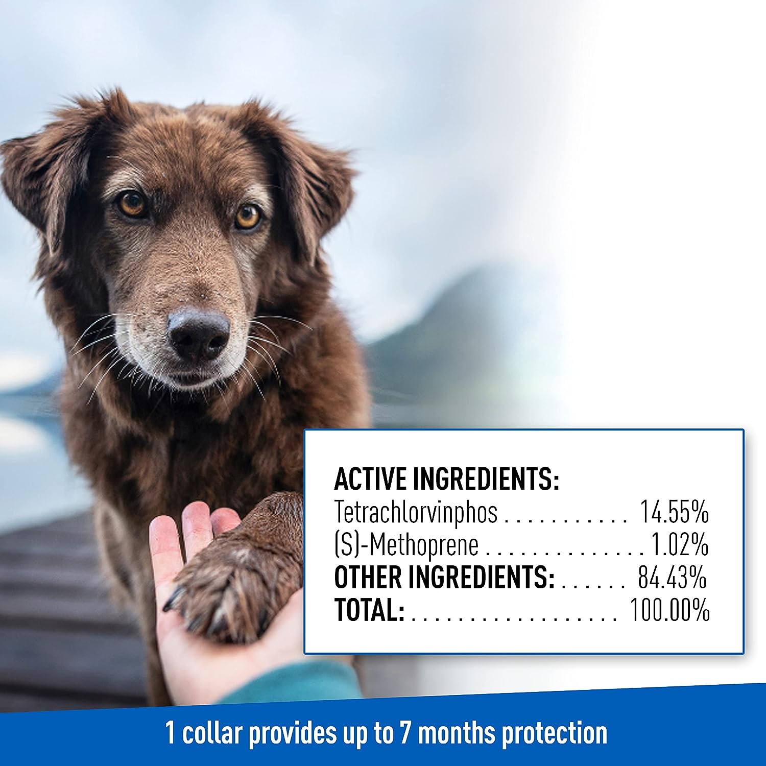 The Adams™ Plus Flea and Tick Collar for Dogs is perfect for large dogs. It provides quick relief from biting fleas and ticks and continuous protection for up to 7 months. Our collar prevents infestation by killing all 3 stages of the flea and tick lifecycle. This collar provides one-step treatment and prevents reinfestations. Even when wet or completely submerged, the collar continues to be effective. This collar is also fully adjustable, and the outer shield reflects direct light up to 450 feet.